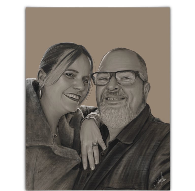 Galite užsisakyti portretą, spalvotai ir nespalvotai. Ant popieriaus, drobės, drobės su mediniu porėmiu ir/arba rėmeliu. Kaina priklauso nuo paveikslo dydžio, siuntimo, kiek asmenų paveiksle turi būti.