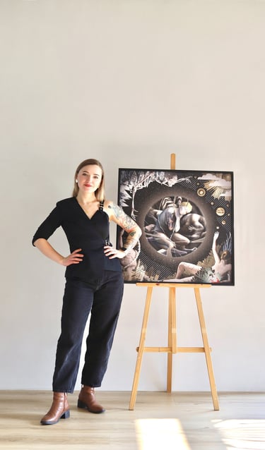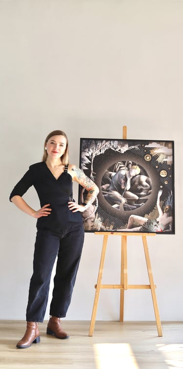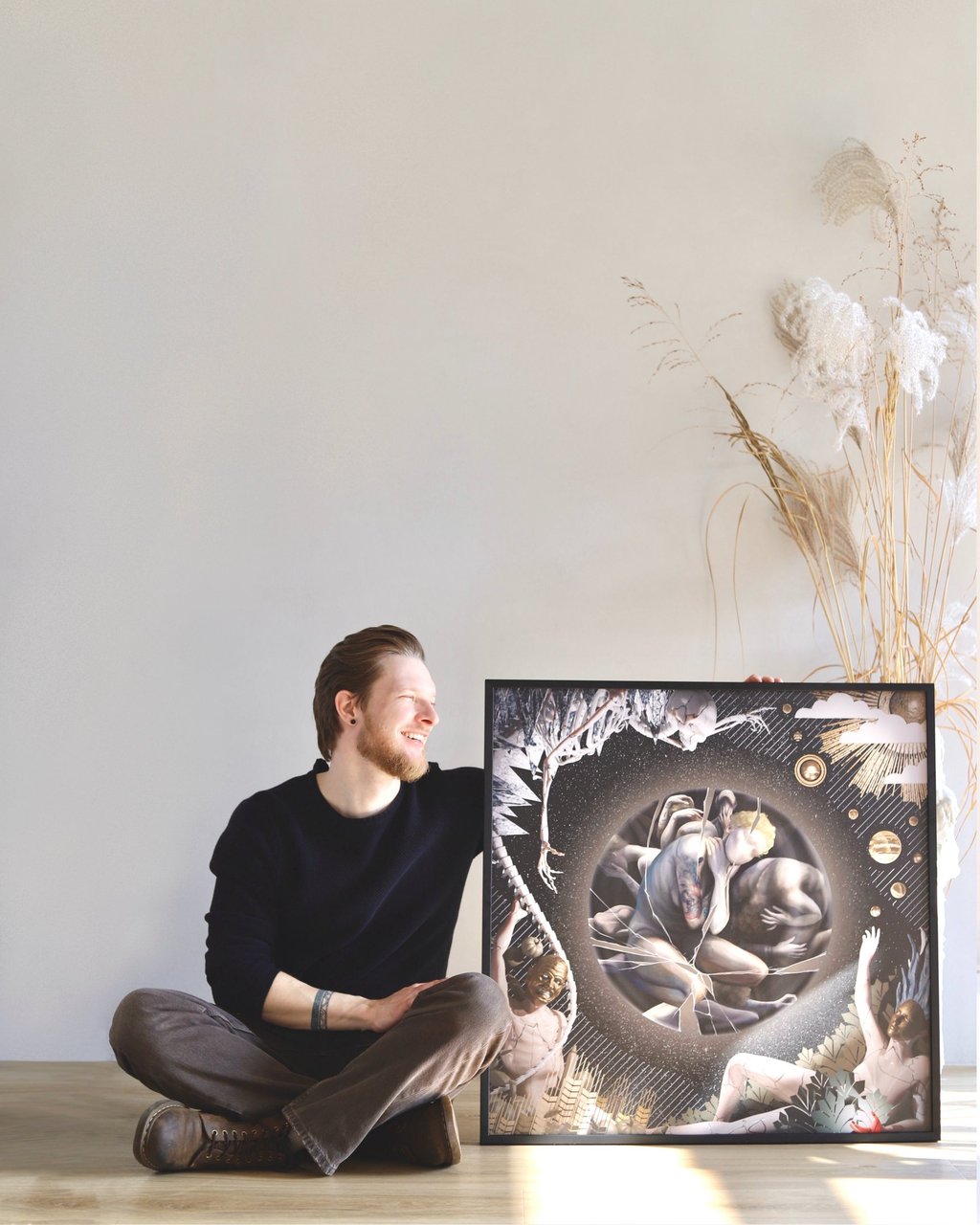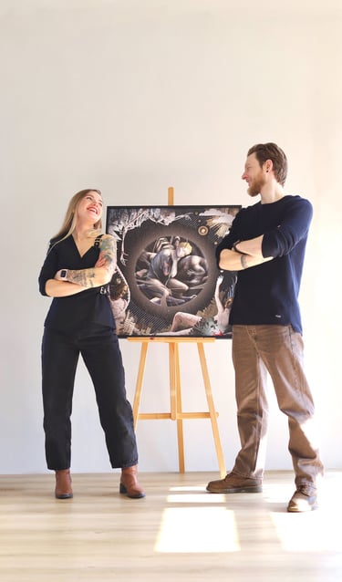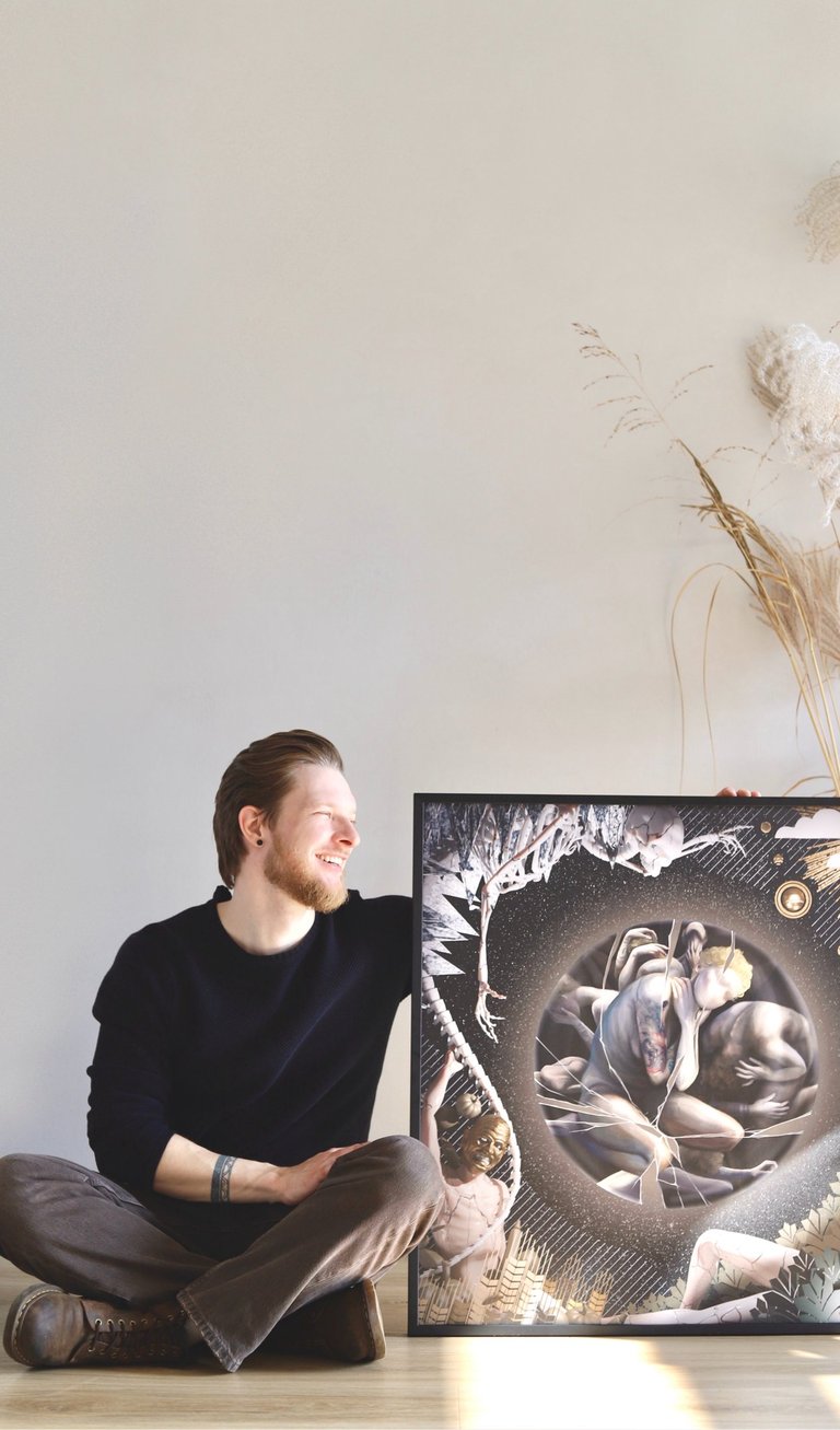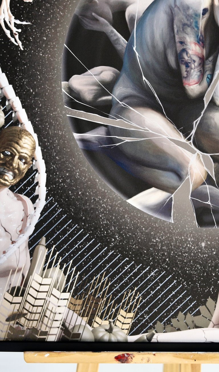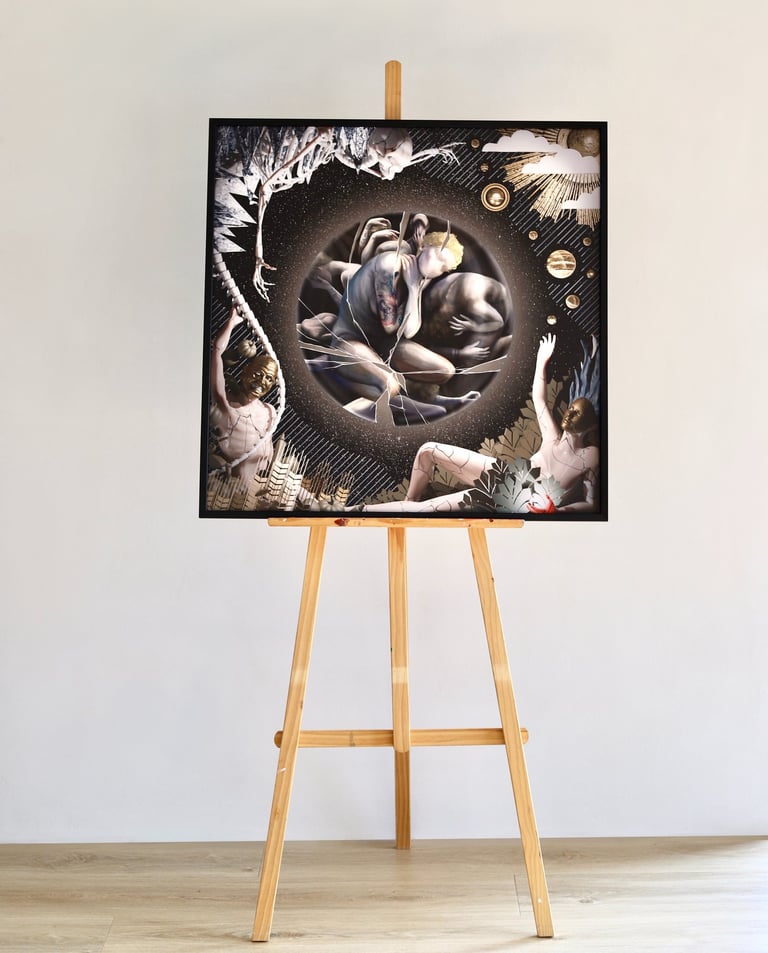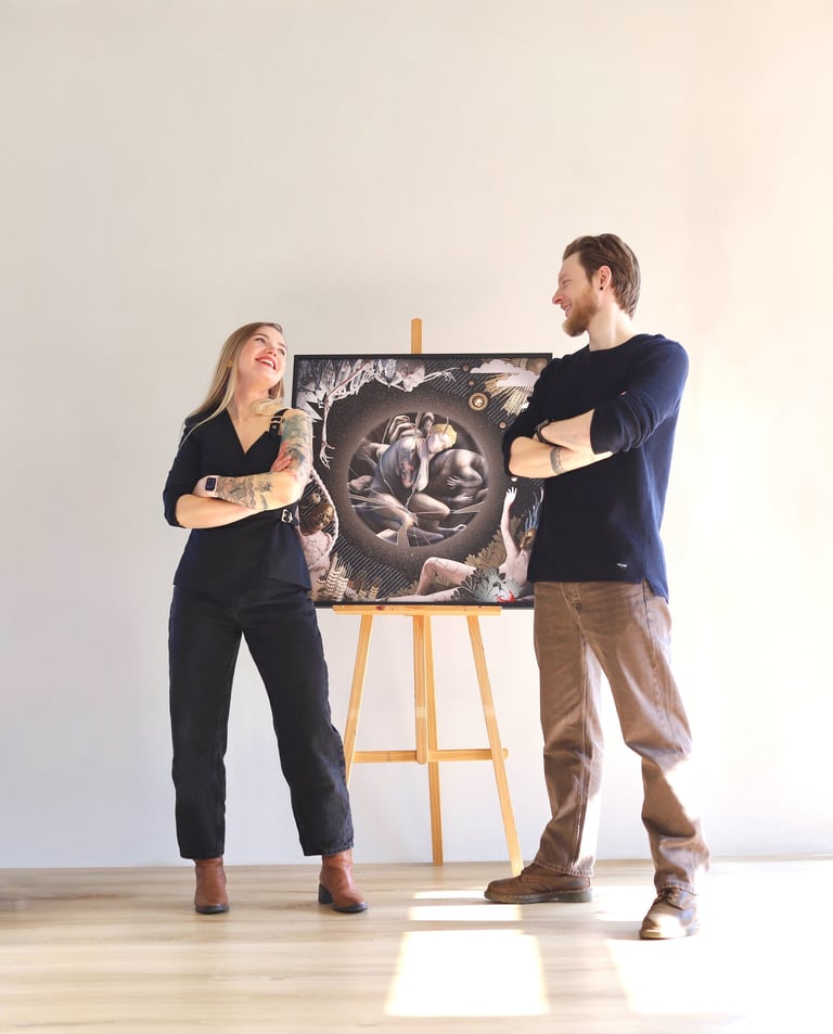 2024 metais man gimė idėja sukurti piešinį kartu su kitu žmogumi, nematant, ką tuo metu kuria kitas, o vėliau abu darbus sujungiant į vieną. Susitariame tik dėl formato, preliminarios spalvų paletės ir bendros kūrybinės idėjos.