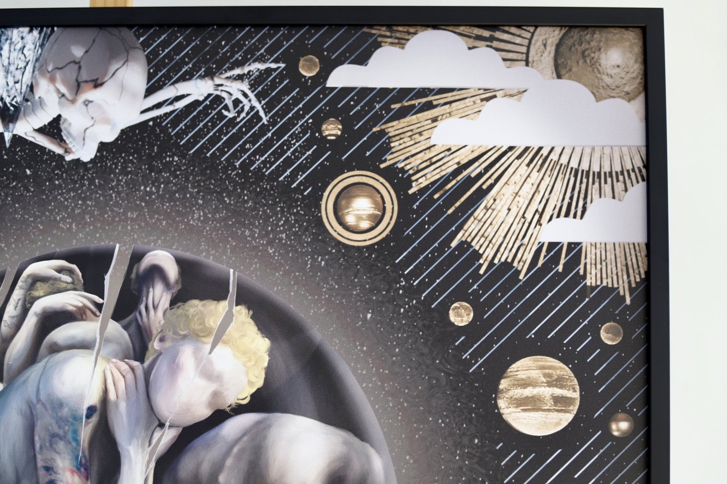 1. Spauda ant drobės su UV apsauga, mediniu porėmiu ir juodu rėmeliu, paruošta kabinimui ant sienos - 290 Eur + pristatymas*