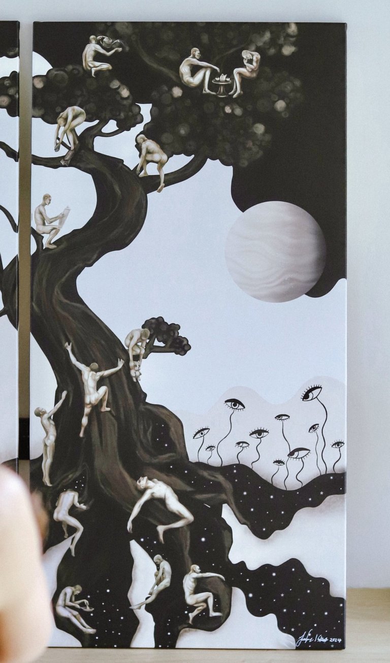 Paveikslas „Du pasauliai” paremtas tema - kūrybos kelias. Du skirtingi žmonės ir dviejų skirtingų žmonių perspektyva šia tema.